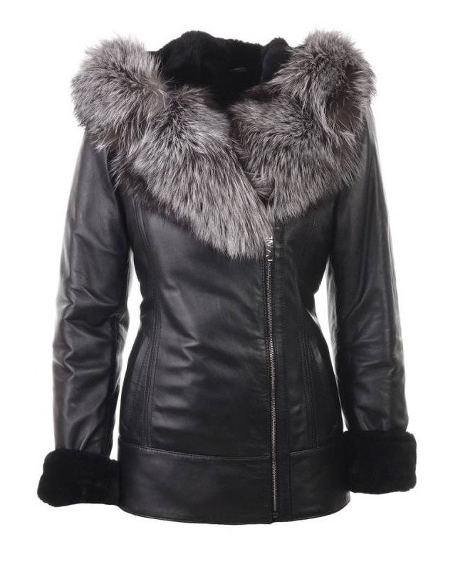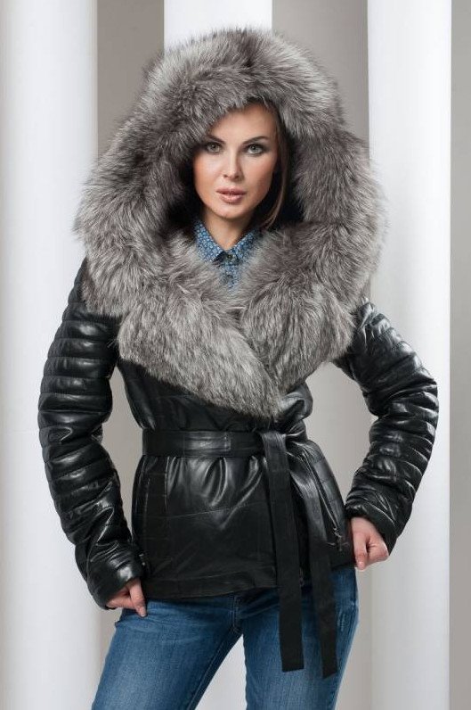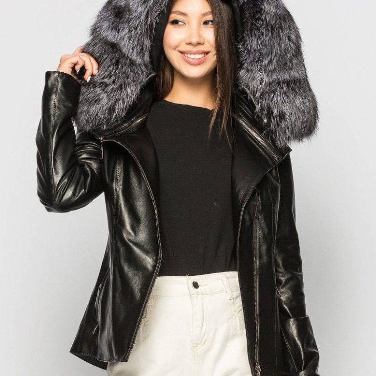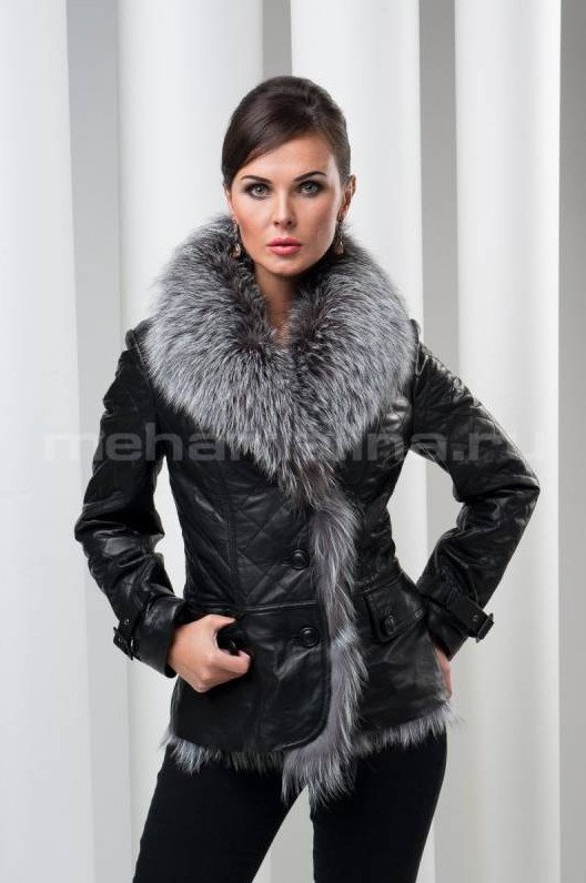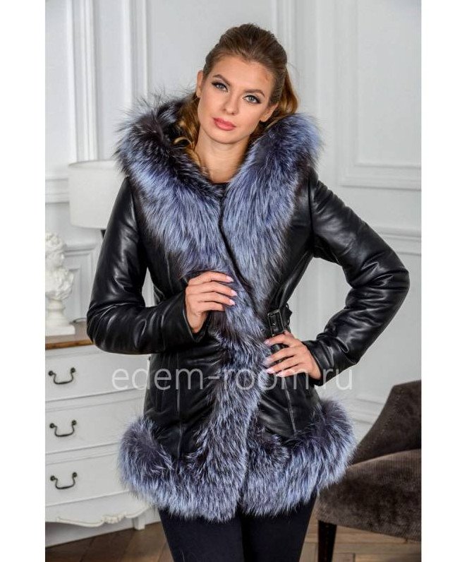Зимние куртки дамские 2022 кожаные с чернобуркой.