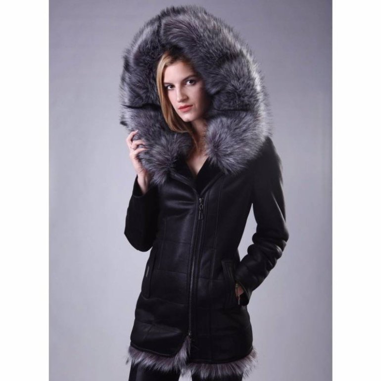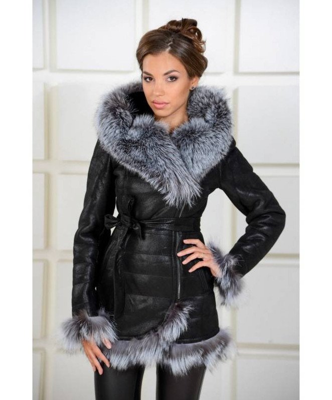 Дубленка Mishel 2017 с чернобуркой с капюшоном.