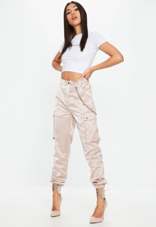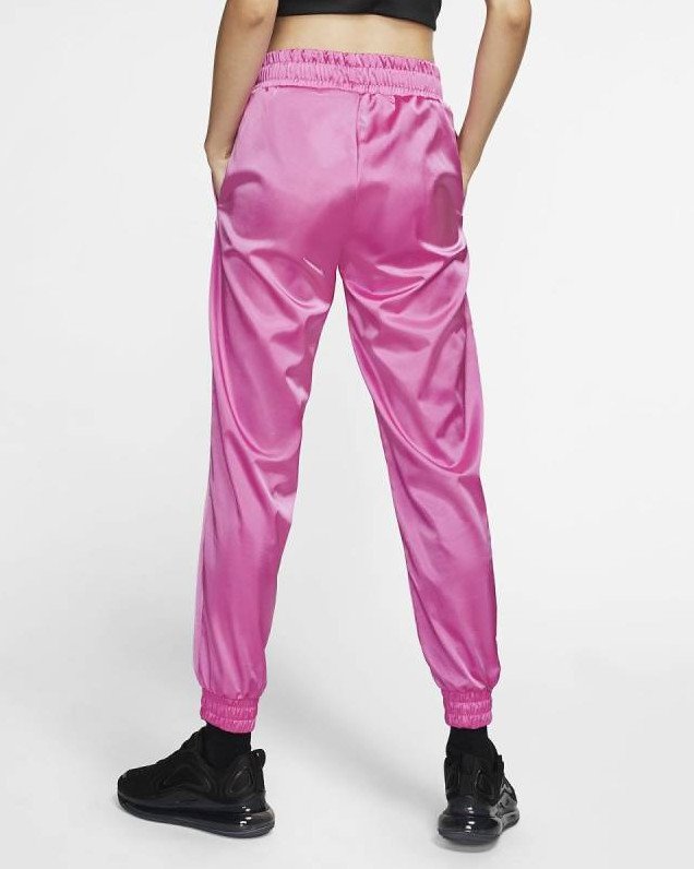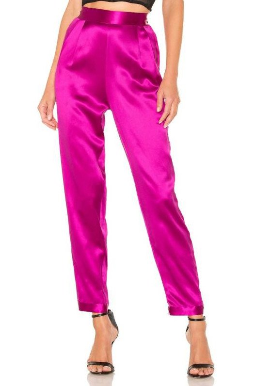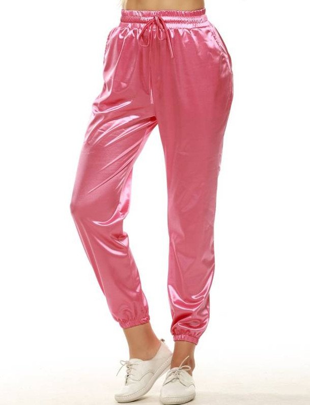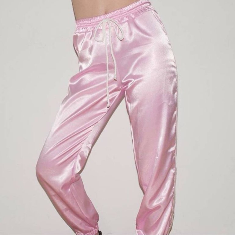 Розовые атласные штаны.