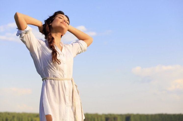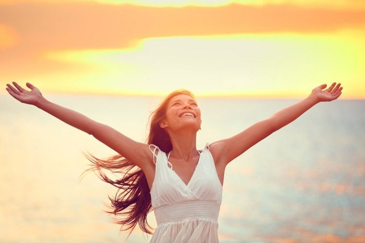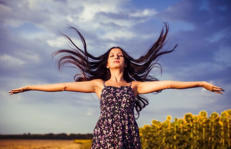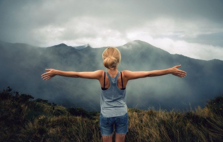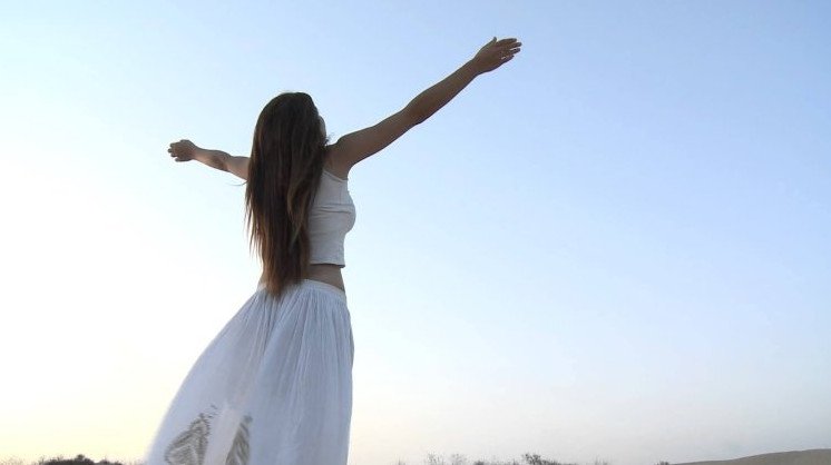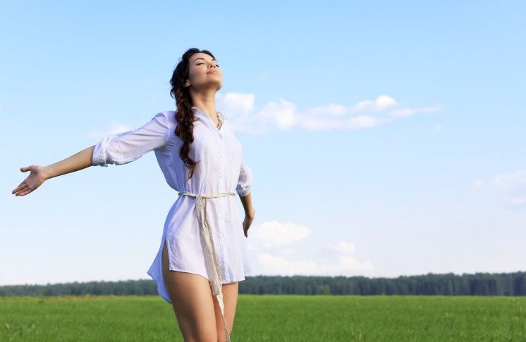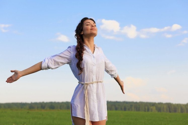 Красивая девушка с распростертыми руками.