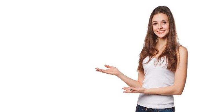 Красивая девушка протягивает руку.