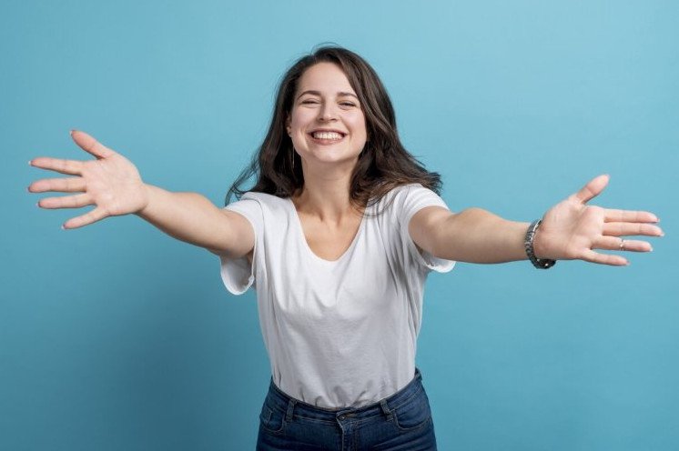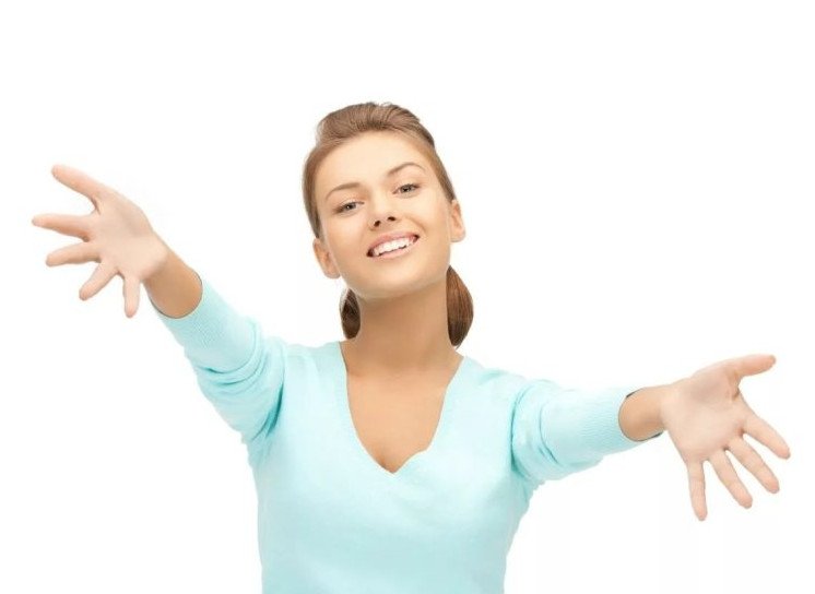 Красивая девушка с распростертыми объятиями.