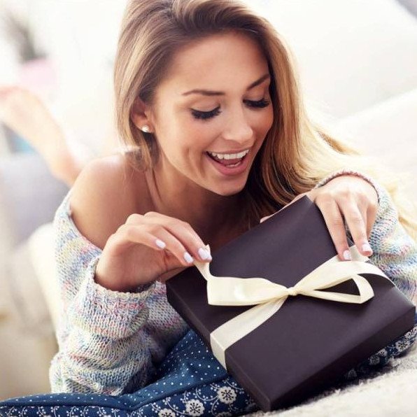 Красивая девушка в экстазе от подарка.