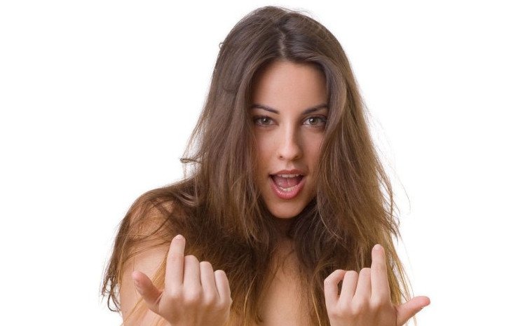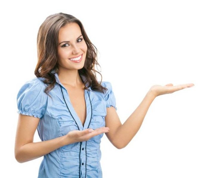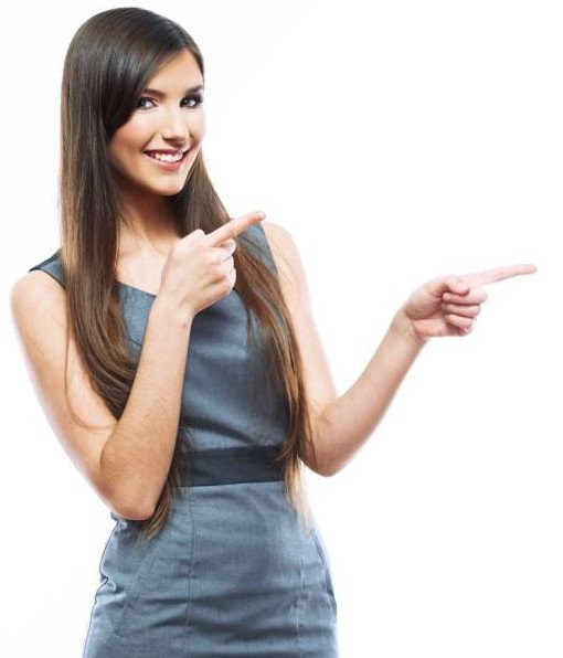 Красивая девушка показывает.