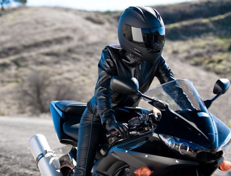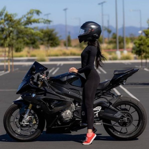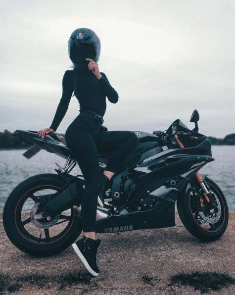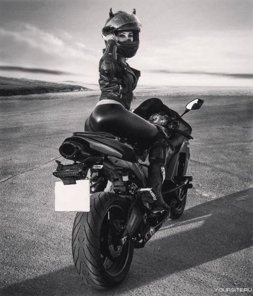 Мотоциклистка в черном.