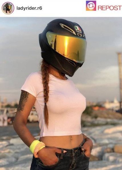 Девушка в мотошлеме.
