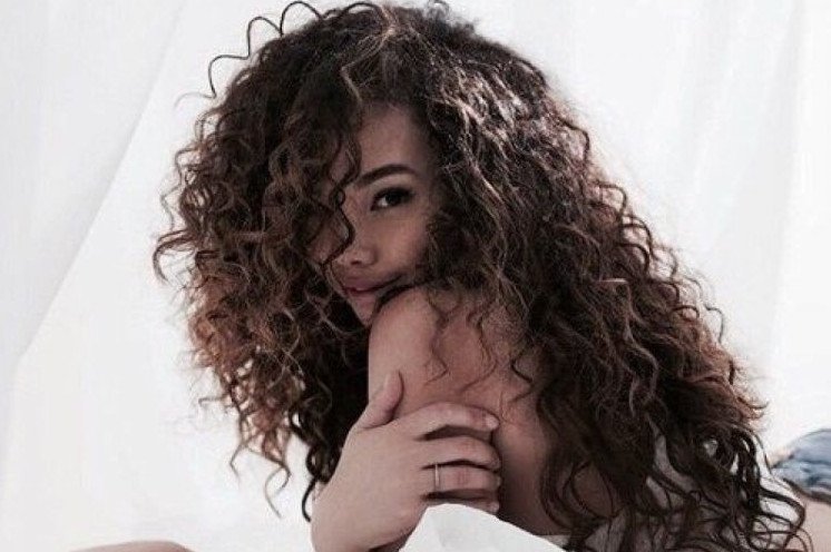 Эротика с брюнеткой с кучерявыми волосами.