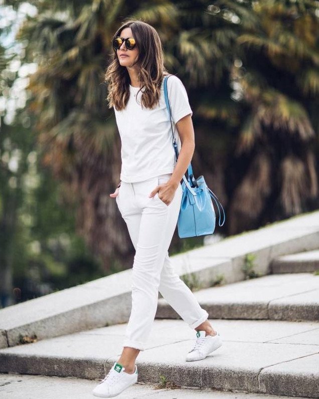Джинсы с белоснежными кедами.