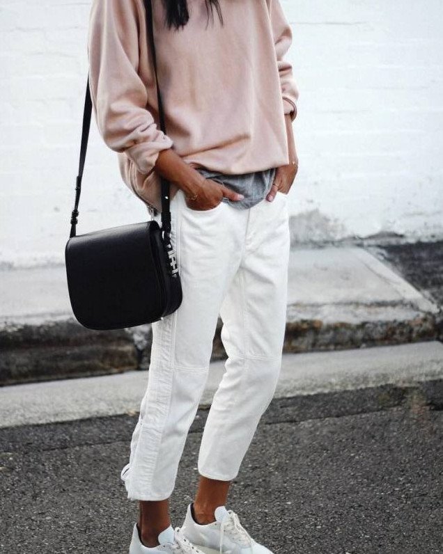 Белоснежные джинсы лук.