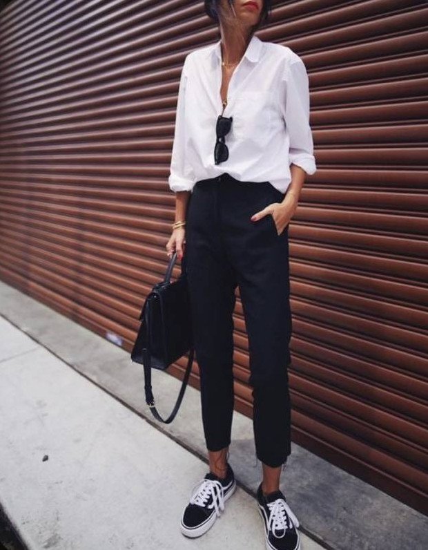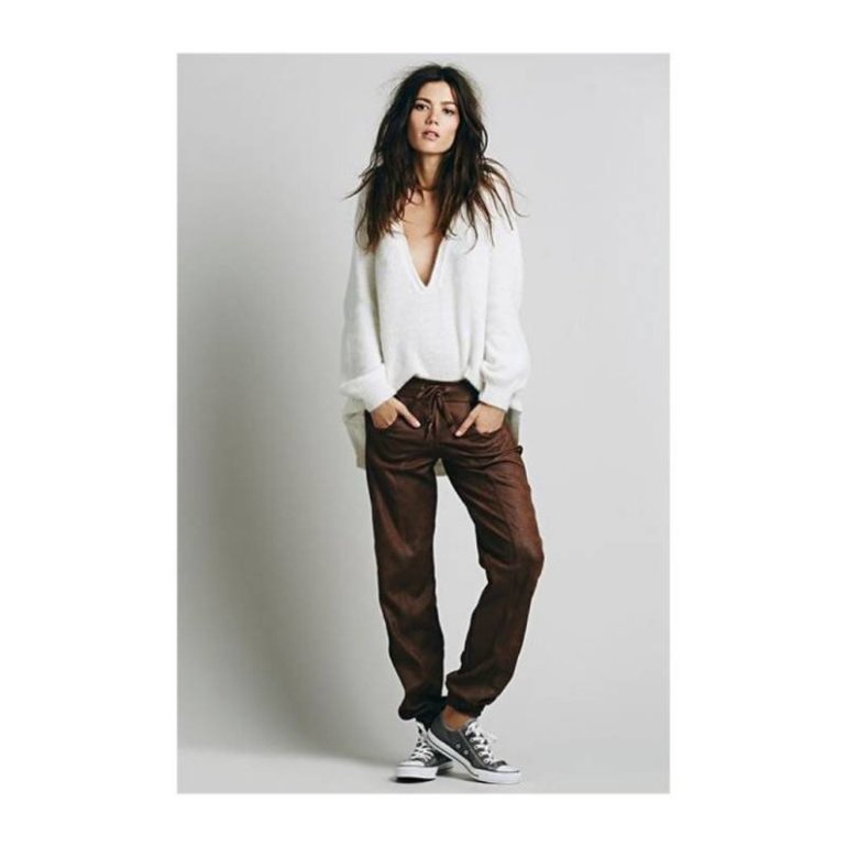 Широкие штаны с кедами.