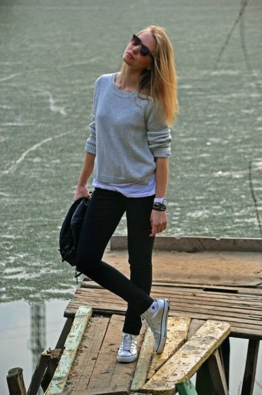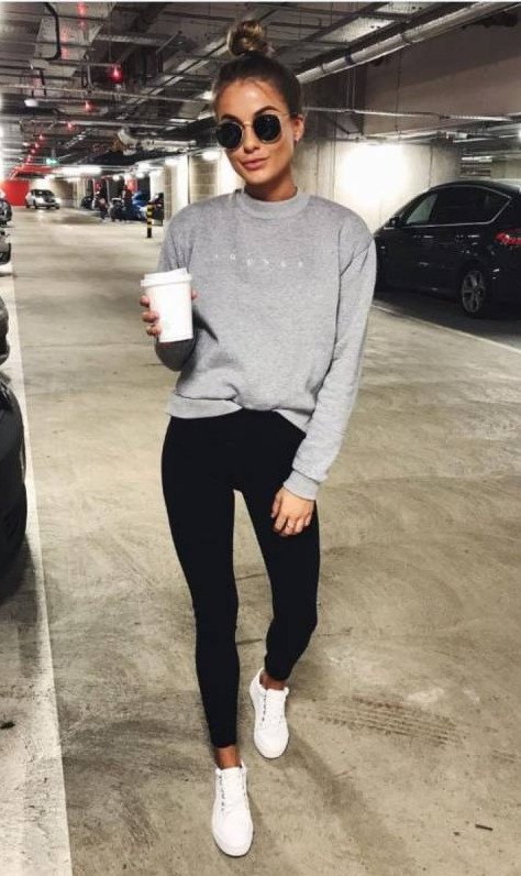 Спортивный стиль с каблуками.
