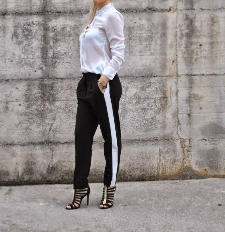 Черно белоснежные штаны.