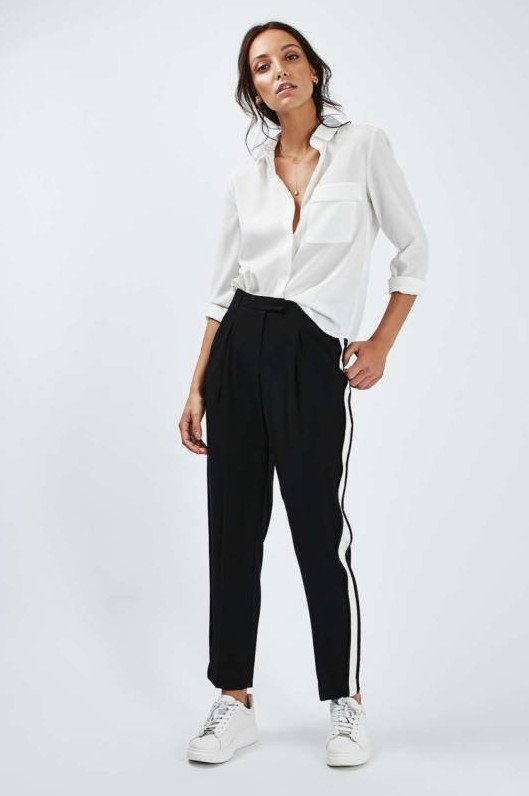 Стрит стайл штаны с лампасами.