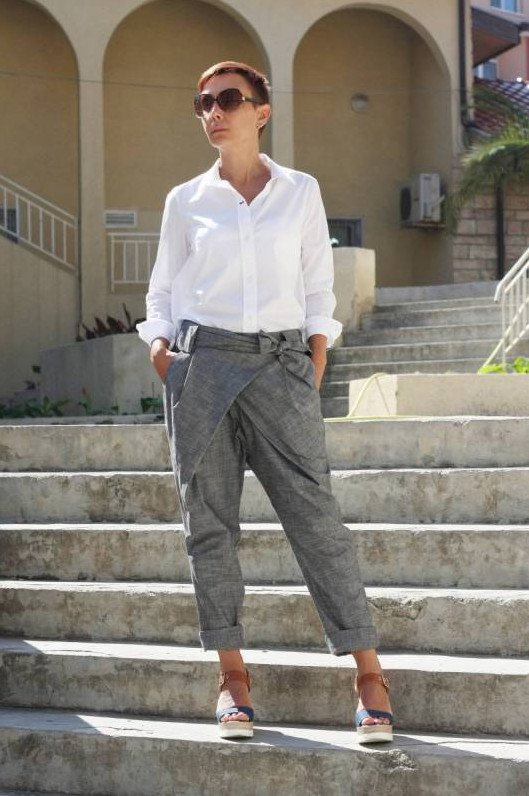 Сероватые штаны дамские.