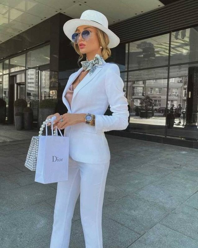 Белоснежный костюмчик дамский брючный тренд 2022.