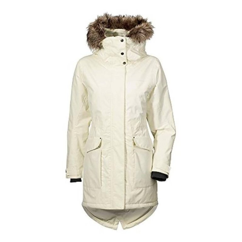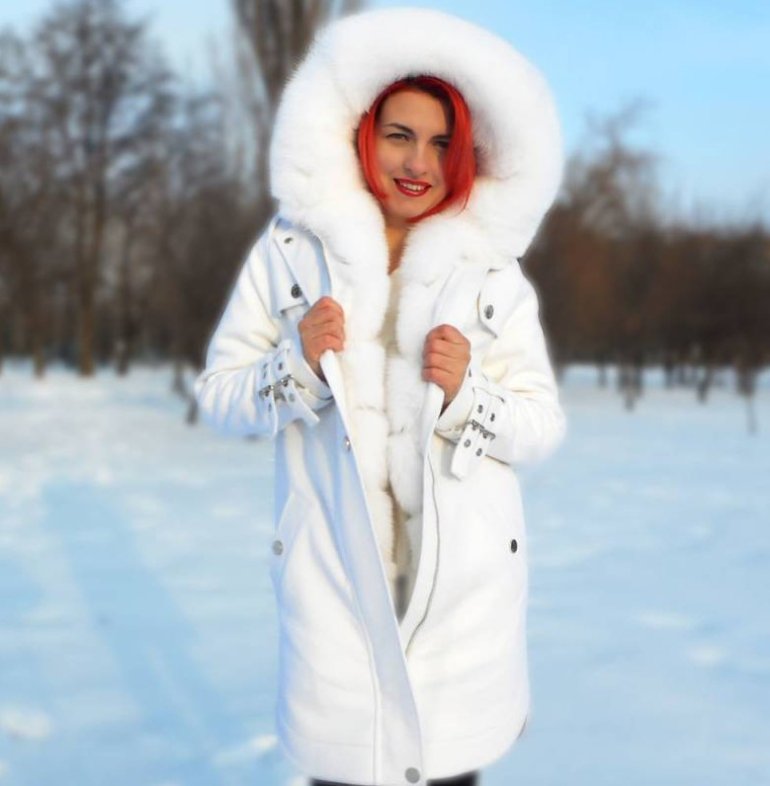 Белоснежная парка с мехом.