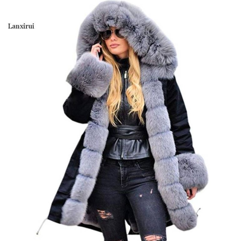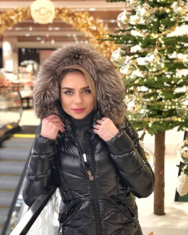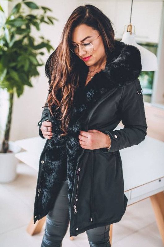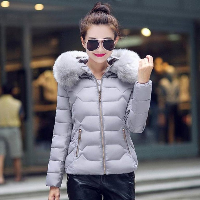 Куртка с меховым капюшоном женская.