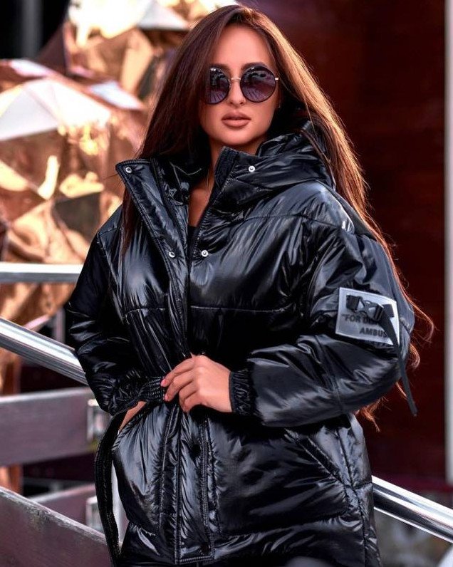 Куртка лаковый с капюшоном для красивых женщин.
