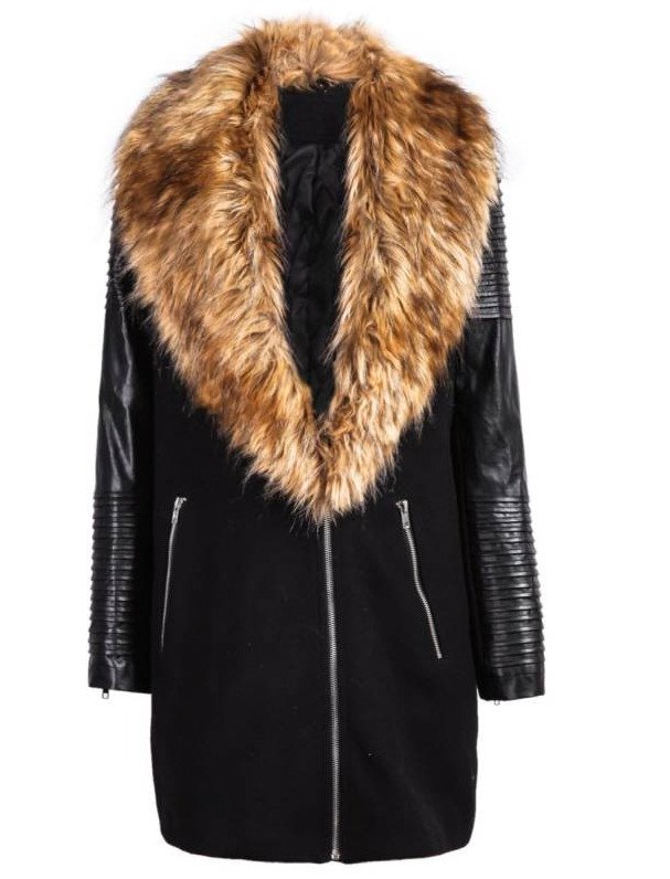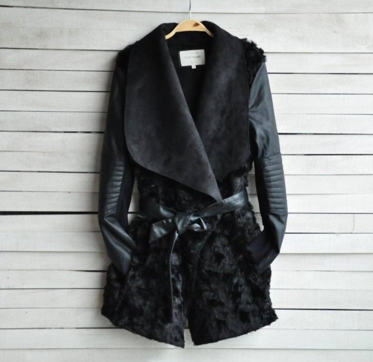Шубка с кожаными рукавами.