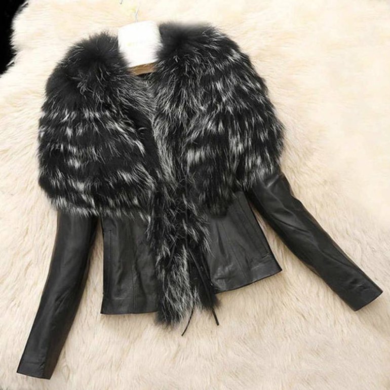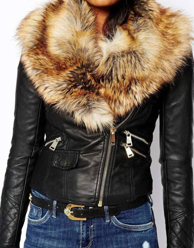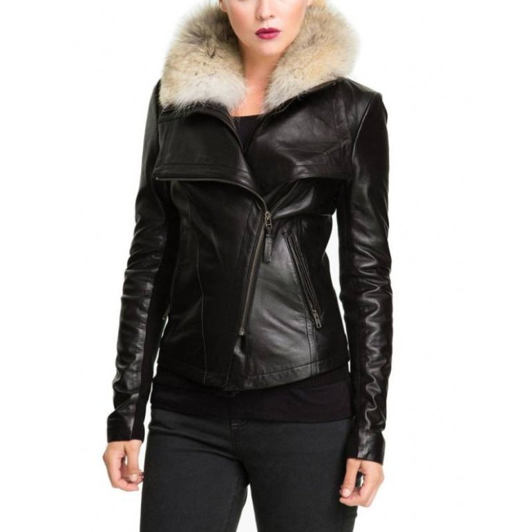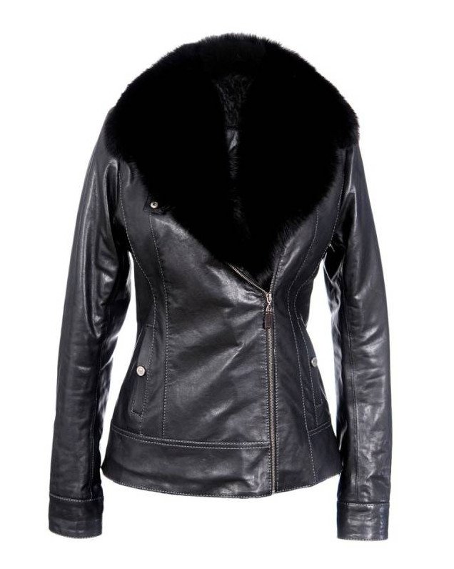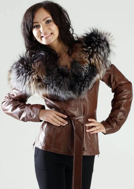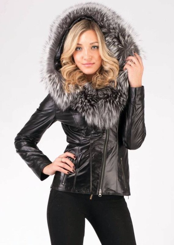 Кожаная куртка с меховым воротником женская.