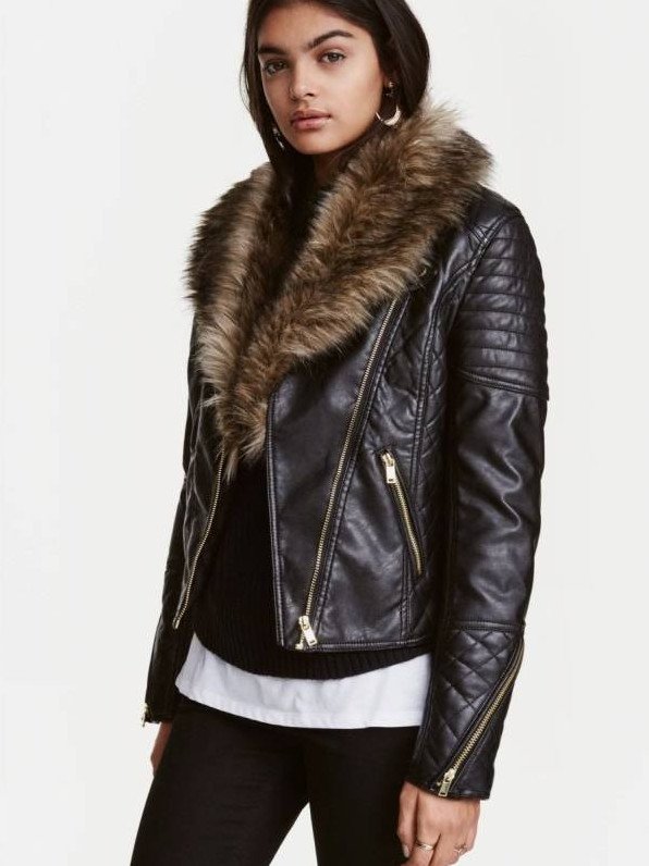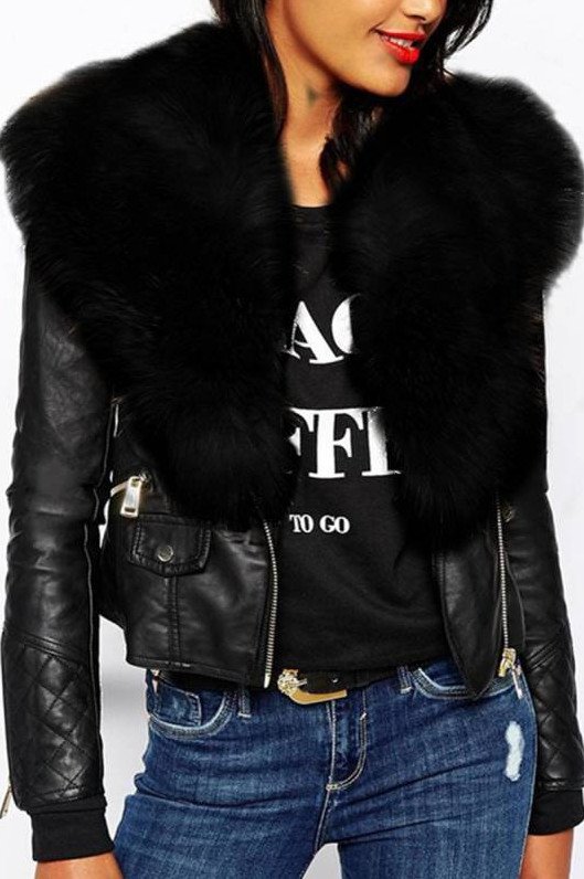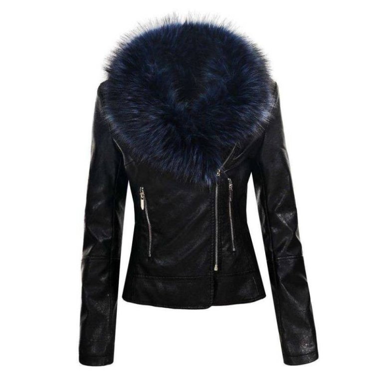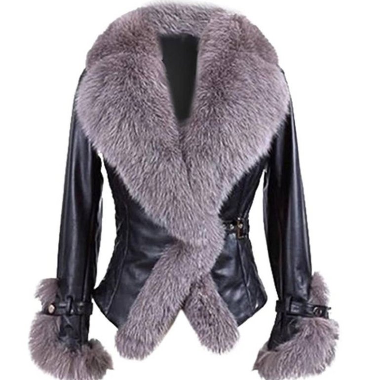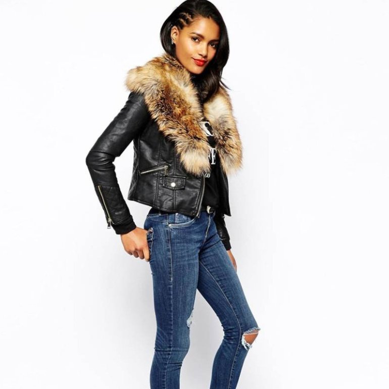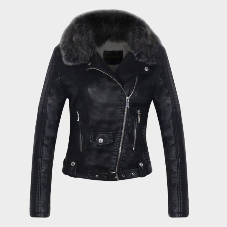 Кожаная куртка с меховым воротником женская.
