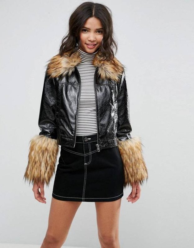 Кожаная куртка River Island с меховым воротником.