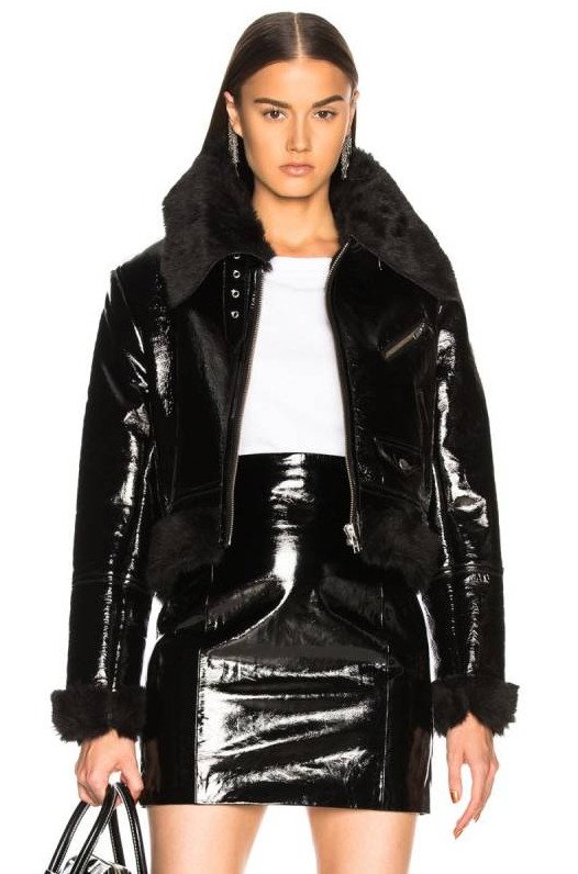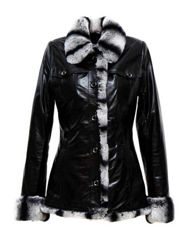 Кожаная куртка с белоснежным мехом женская.
