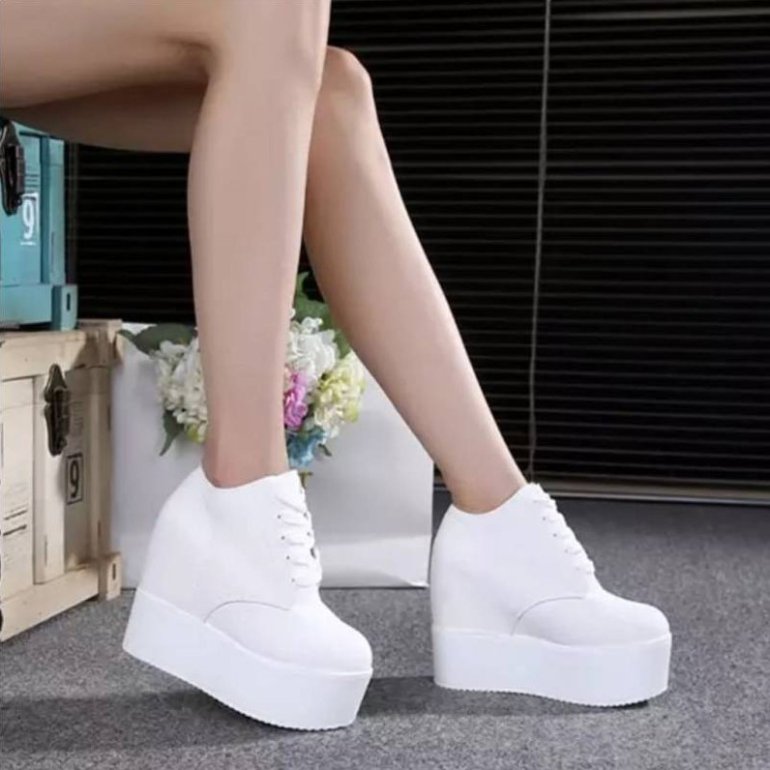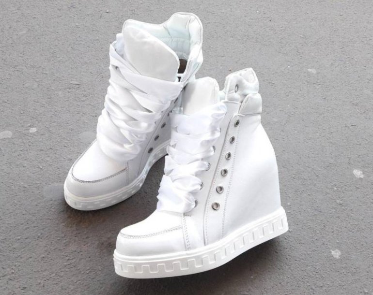 Белоснежные кроссовки на танкетке.