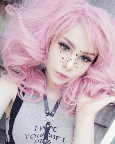 Даяна Кранк розовые волосы.