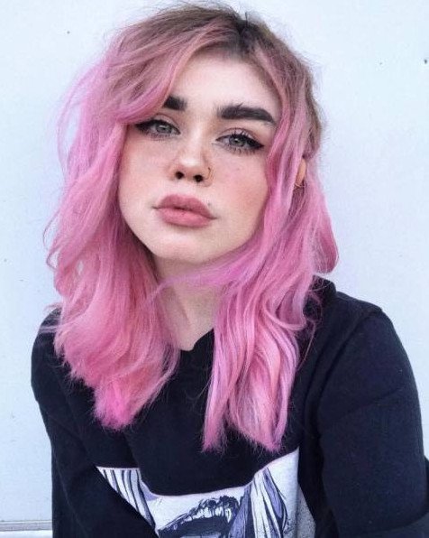 Hailie Barber Pastel Pink hair.