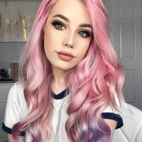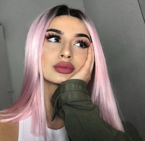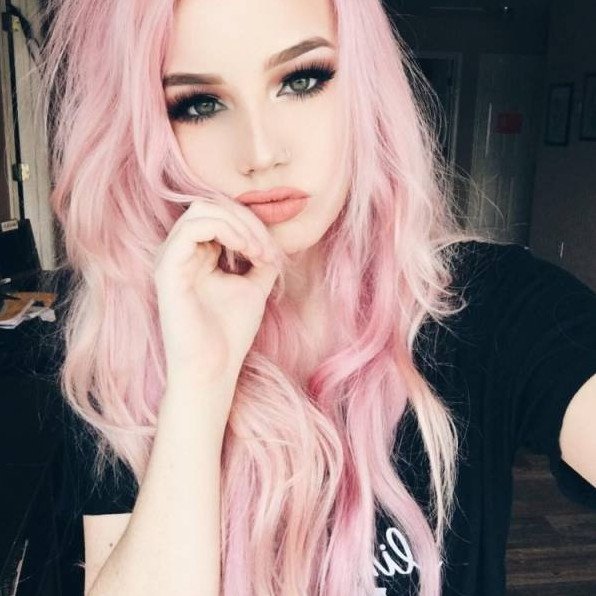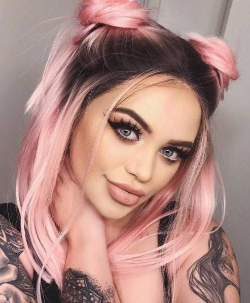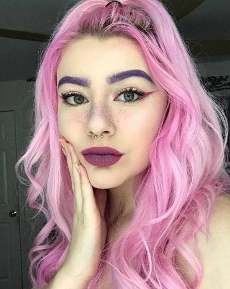 Розовые волосы фиолетовый мейкап.
