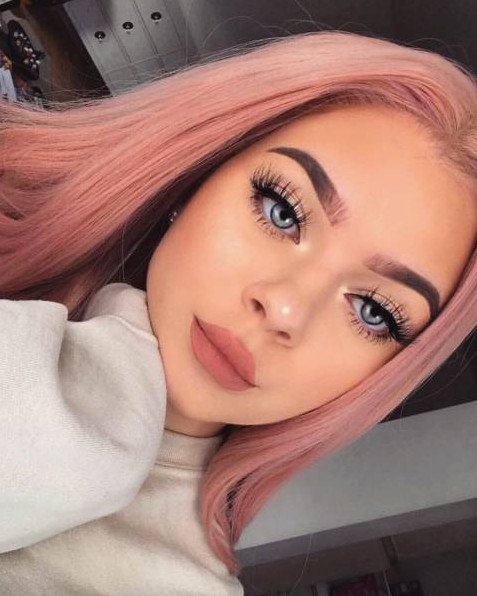 Мейкап с розовыми волосами.