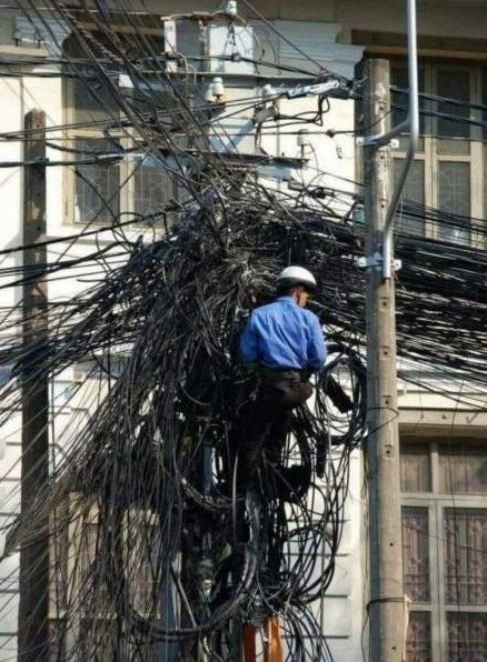 Электрик в проводах.