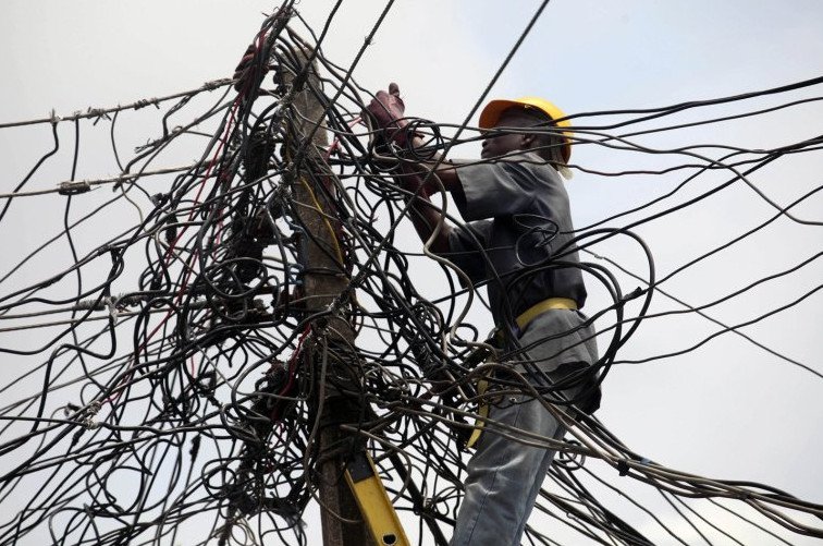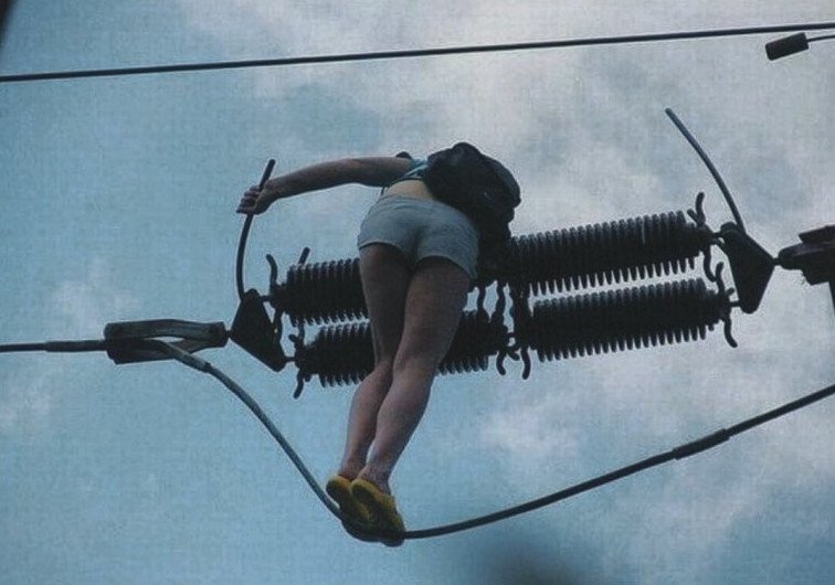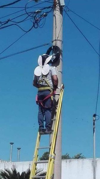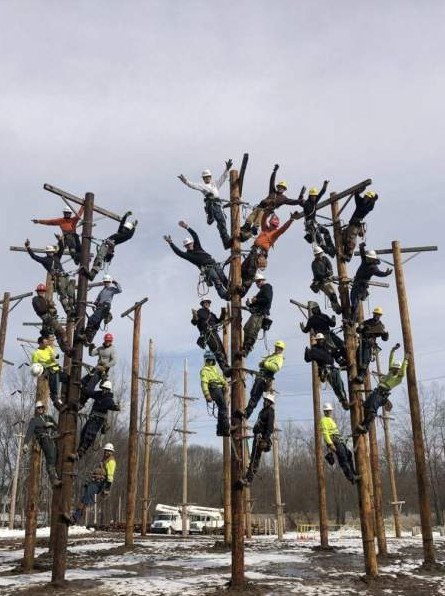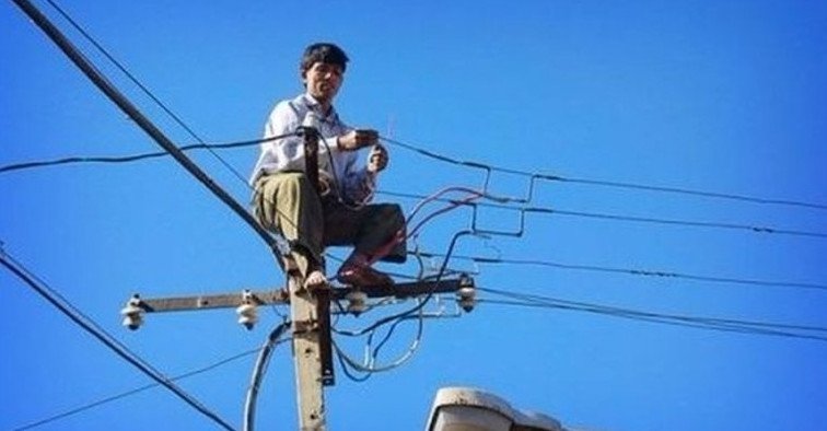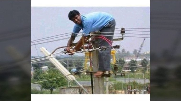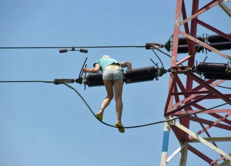 Электрики на столбе прикол.