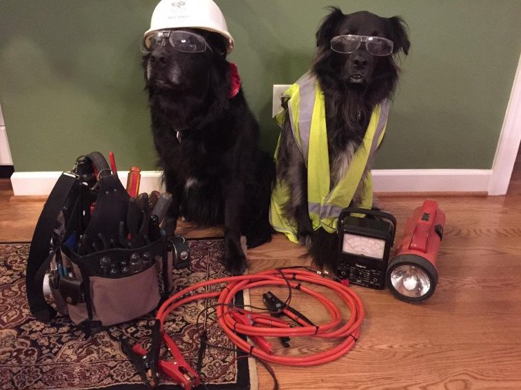 Собака в электрика.