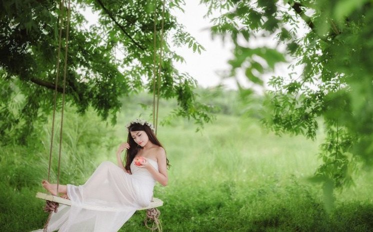 Девушка на качелях.