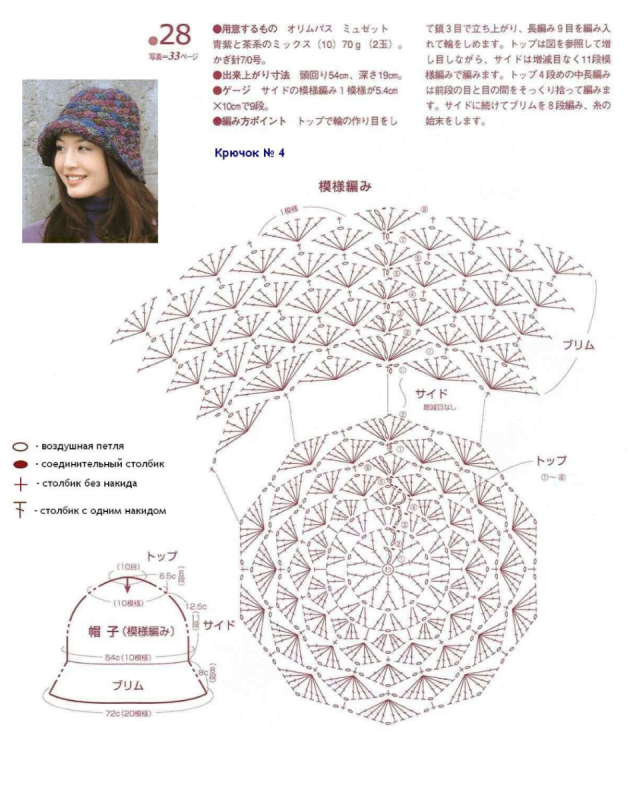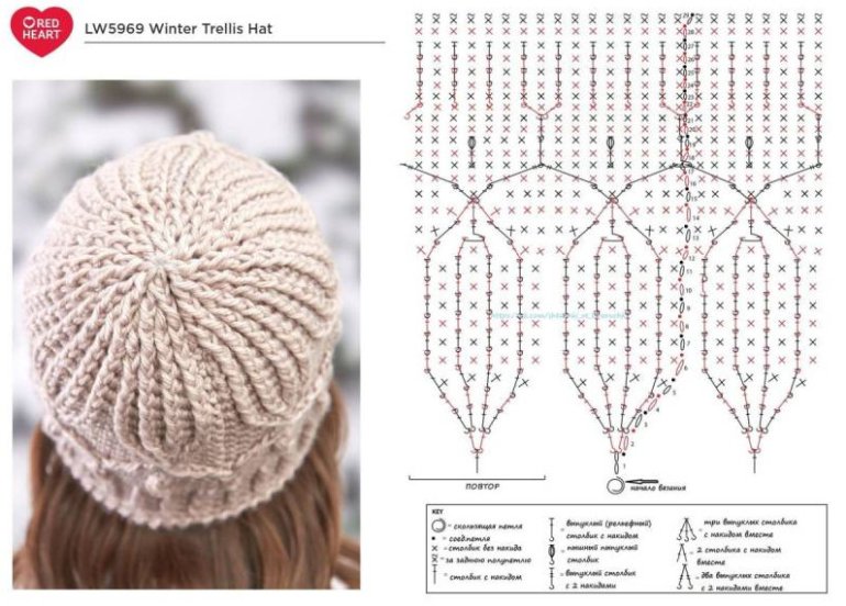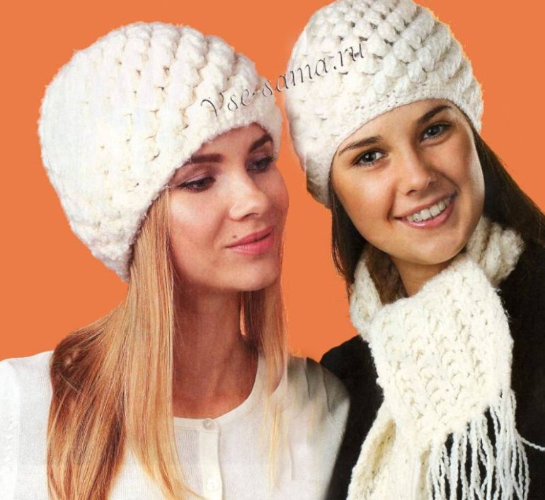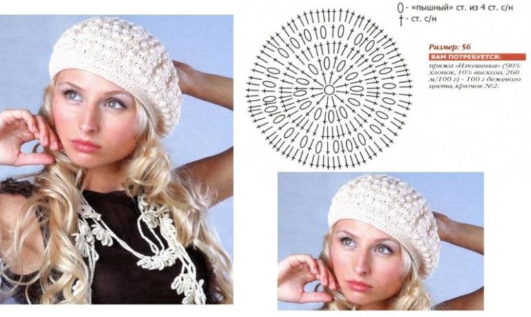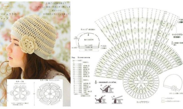 Вязаные шапочки крючком для красивых женщин со схемами.