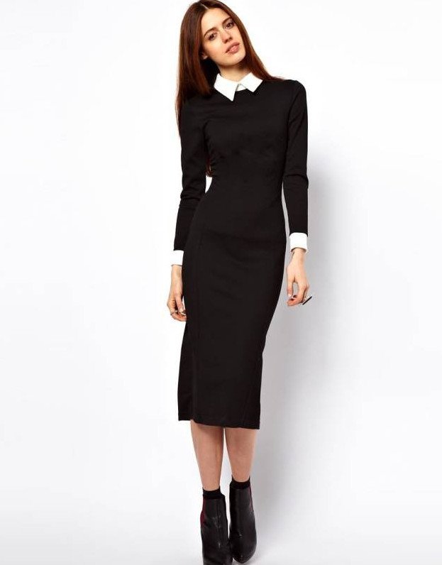 Платье футляр с воротником.
