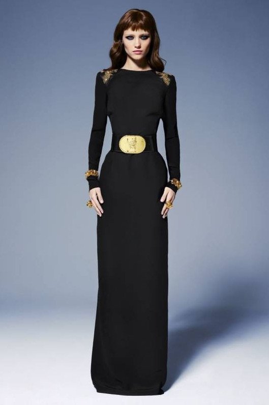 Платье Версаче темное с золотом.