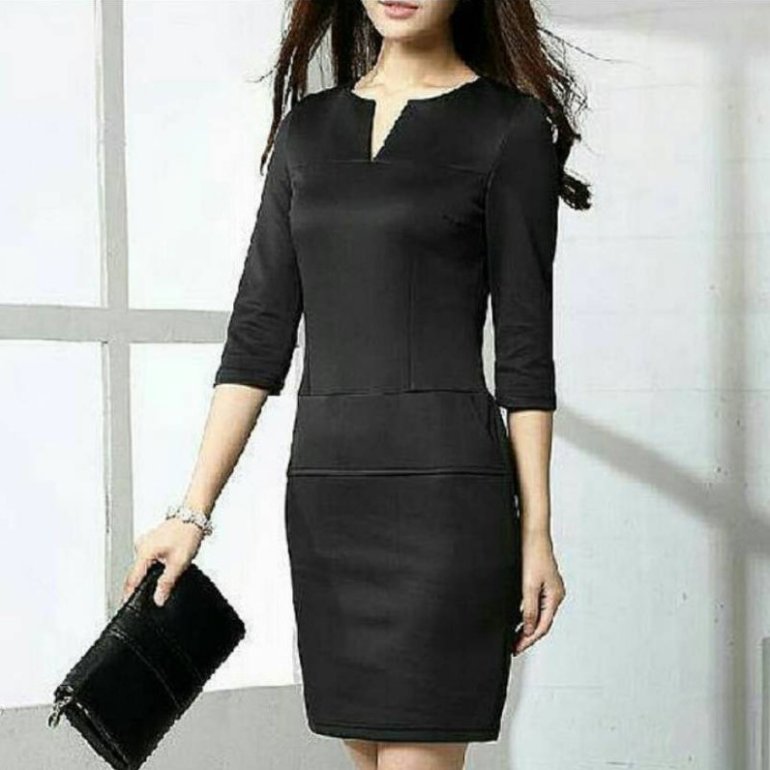 Темное офисное платье.