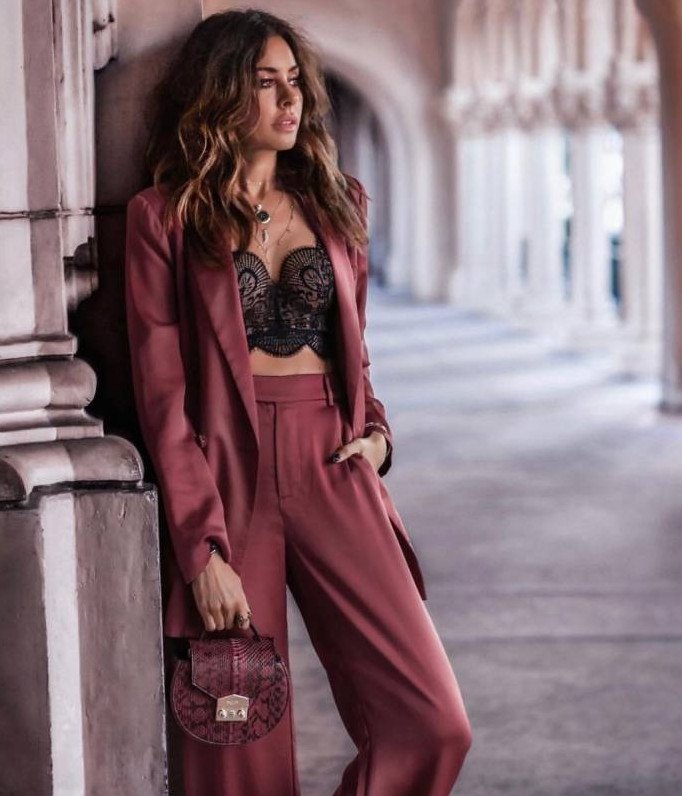 Очень красный брючный костюмчик дамский.