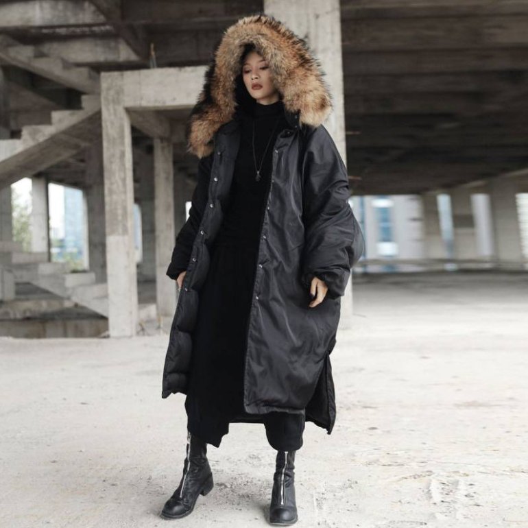 Длиннющий пуховик верный образ дамский.