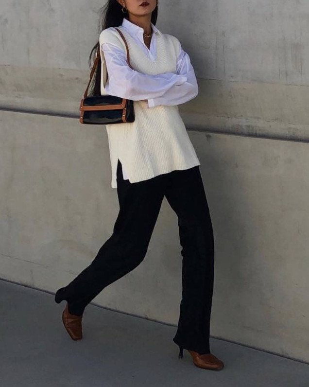 Элегантные образы с трикотажным жилетом.