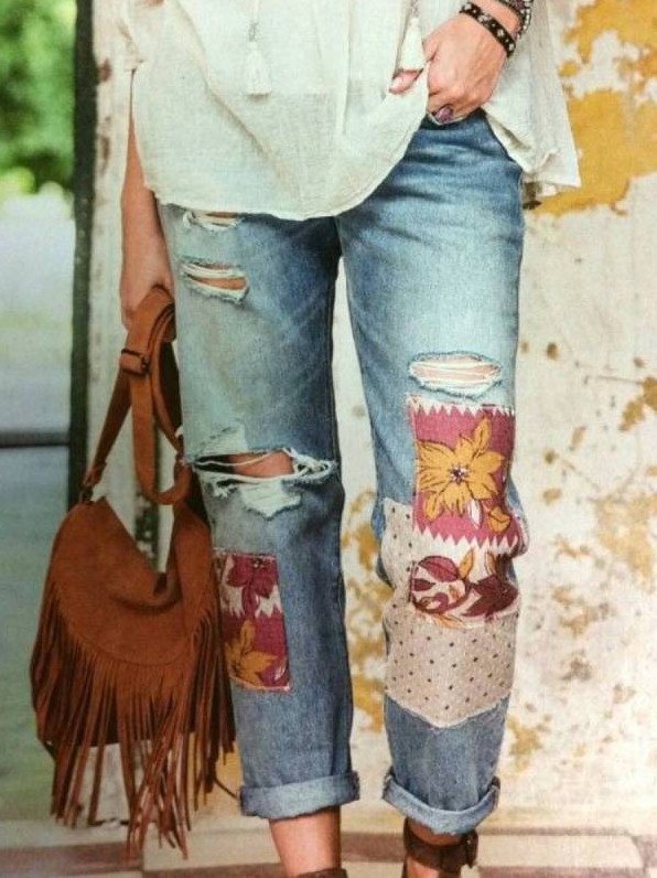 Джинсовые штаны в стиле бохо.