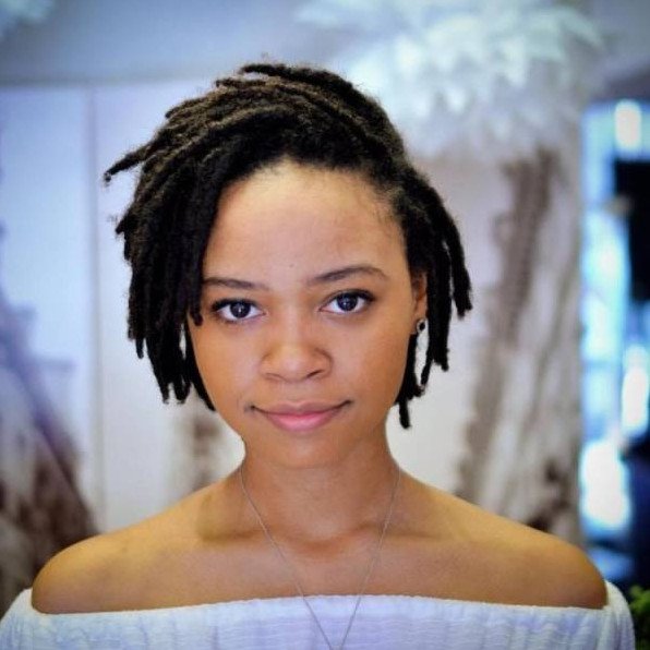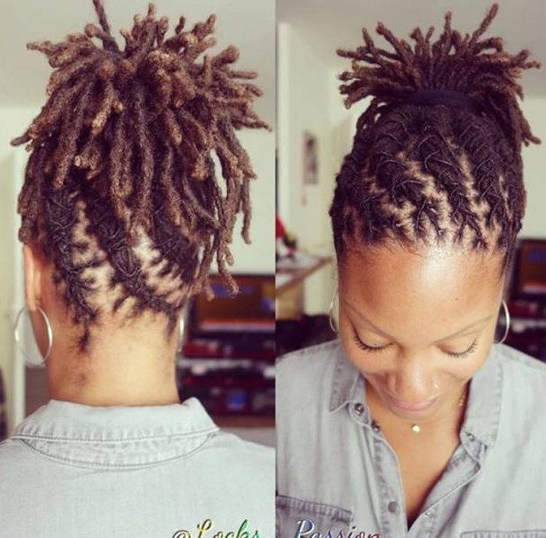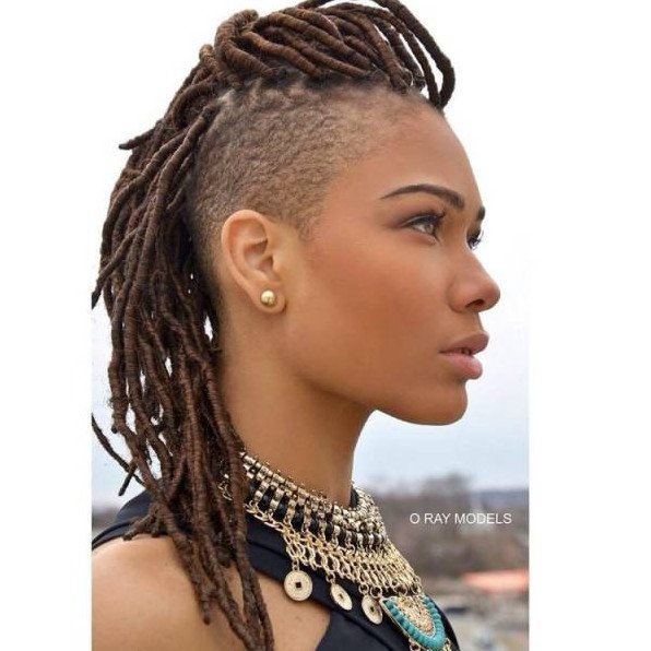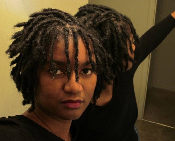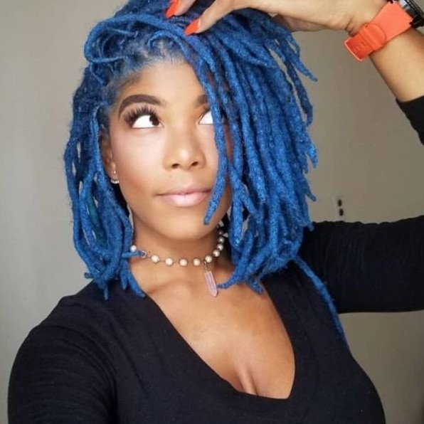 Афроамериканка с дредами на короткие волосы.