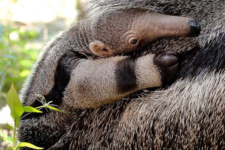 Огромной муравьед с детенышем.