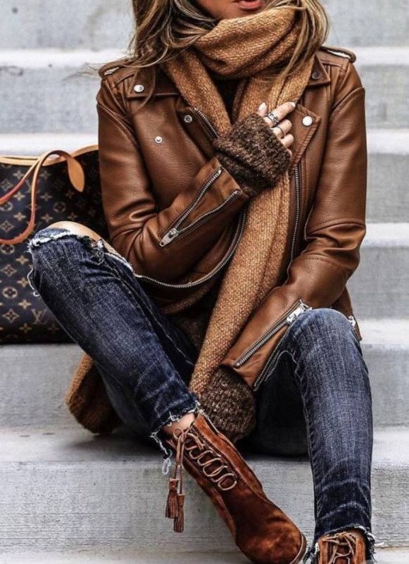 Кожаная куртка в Кэжуал стиле.