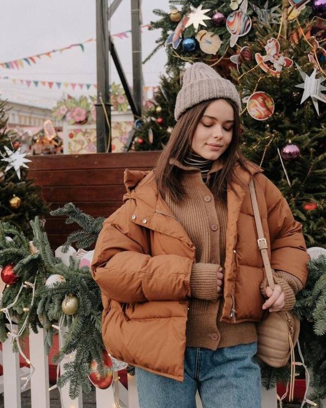 Трендовый карий пуховик.