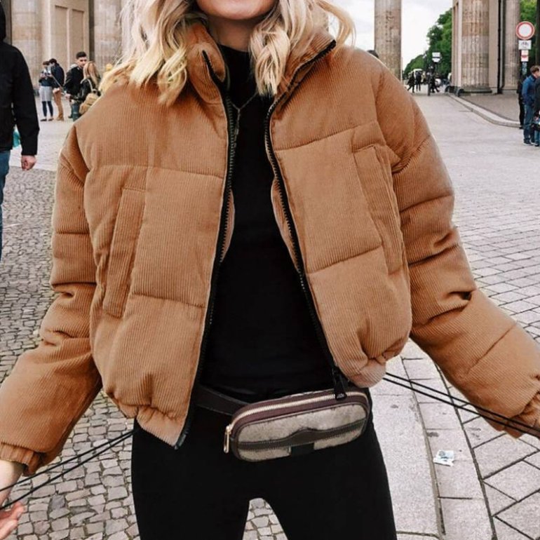 Образы с недлинной дутой курткой.