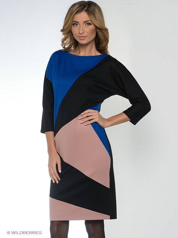 Трикотажное платье колор блок.